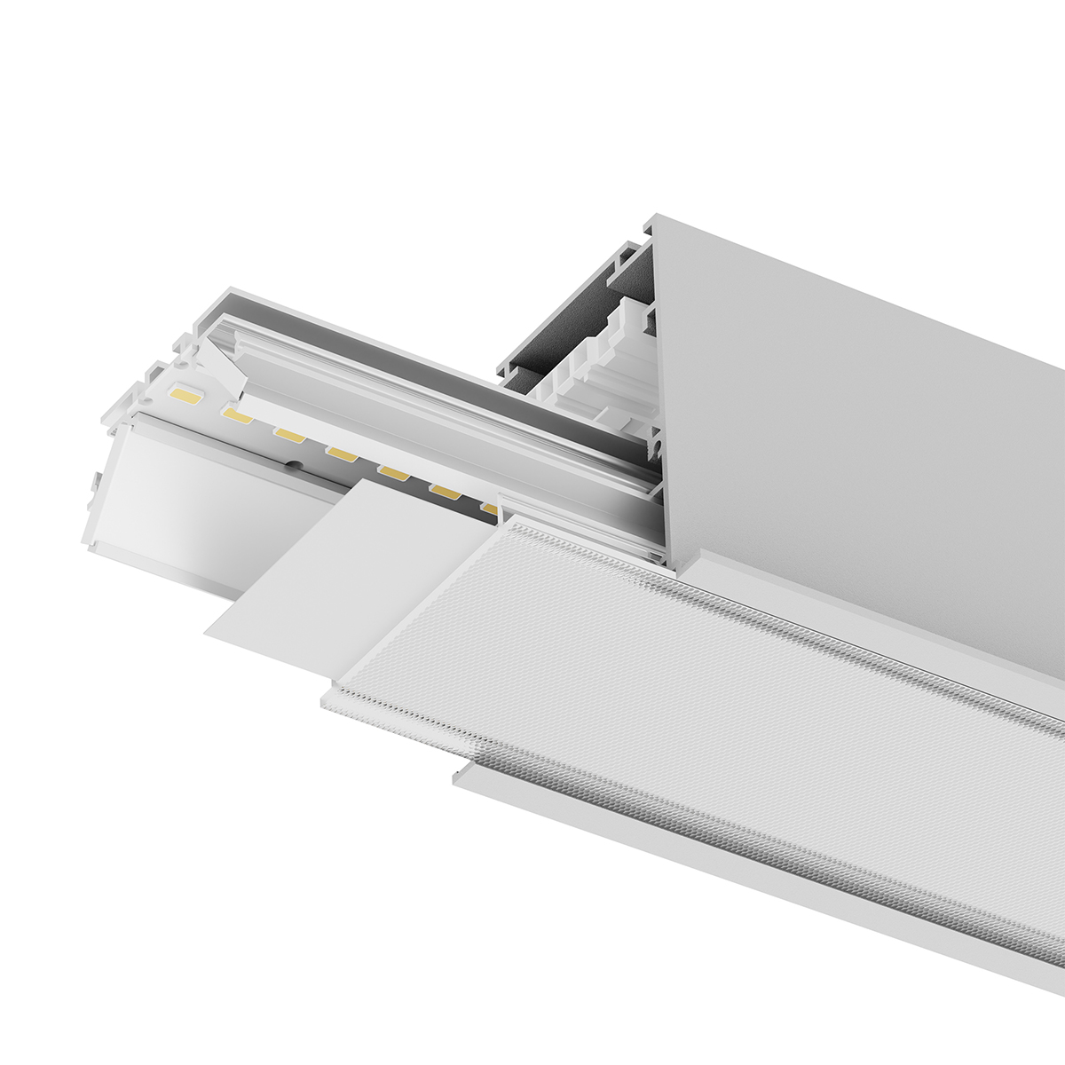 Fuldt produceret i Europa kombinerer den elegant design med avanceret optik, der minimerer blænding – ideel til kontorer, mødelokaler og åbne arbejdsområder.