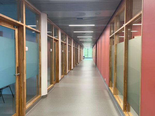 Skræddersyet belysning til Protonsenteret i Bergen, et højteknologisk kræftbehandlingscenter ved Haukeland Universitetssykehus, hvor vi har leveret vores unikke og perfekt integrerede lampeserie Rekta 30, specialtilpasset blandt andet Dampas stållamelloft og lignende lofsystemer.